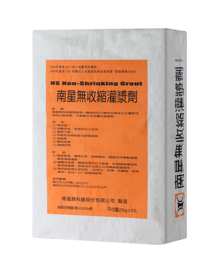 施工前應在施工個所做好基礎混凝土面施工前打毛及養生(保持濕潤界),又模板應牢靠。拌合完成灌漿料應在30分鐘以內使用完畢(熱天30℃時應縮短為20分鐘),應事前做好人員配置。施工完成後,請照一般混凝土養生方法做好養生作業。南星無收縮灌漿的使用,因其使用目的,施工位置及環境之不同,有諸多應注意事項,為確保其無收縮效果,如有任何不明瞭處,請洽本公司業務人員,敝公司當竭誠的作各種的技術服務與指導。